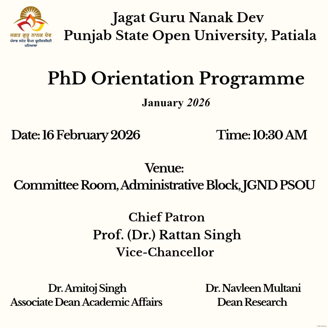 Jagat Guru Nanak Dev Punjab State Open University C/28 Lower Mall, Patiala, Punjab, 147001